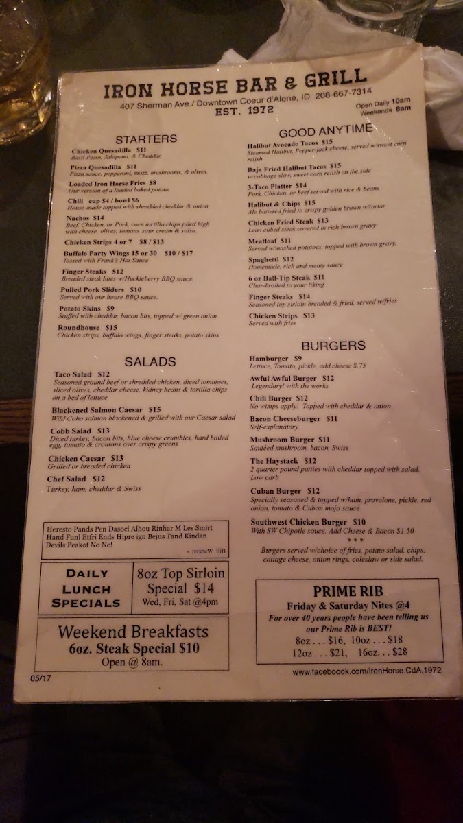 Welcome to Iron Horse Coeur d'Alene, a gem nestled in the heart of downtown Coeur d'Alene, Idaho, at 407 Sherman Ave. This charming eatery is celebrated not just for its warm ambiance and antique memorabilia but also for its mouthwatering menu.